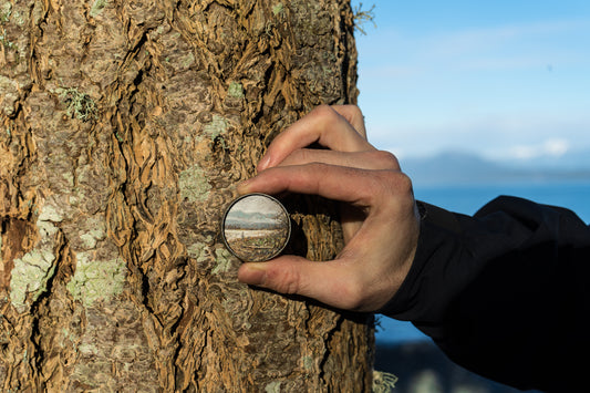 Utilizing the concept of Miniscule Awe, with works as small as 3-4 cm across, Vanderbyl leverages Attention Restoration Theory (ART) by drawing the brain into its fascination mode, allowing directed attention to rest. The works in the exhibition stem from a personal project that began around 2010 involving gifting portable artworks to those suffering from Post Traumatic Stress. The recipients could access calming scenes of nature, made with great care by another human's touch. These pieces become secret portals to other parts of the world, always accessible to provide solace.