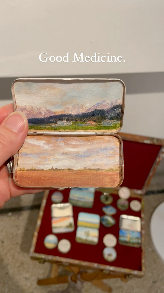 How would it feel if you could escape to a familiar place at any moment's notice? These tiny oil paintings in vintage medicine tins are uniquely made by Canadian multidisciplinary artist Shelley Vanderbyl.